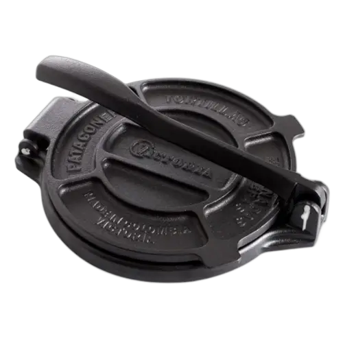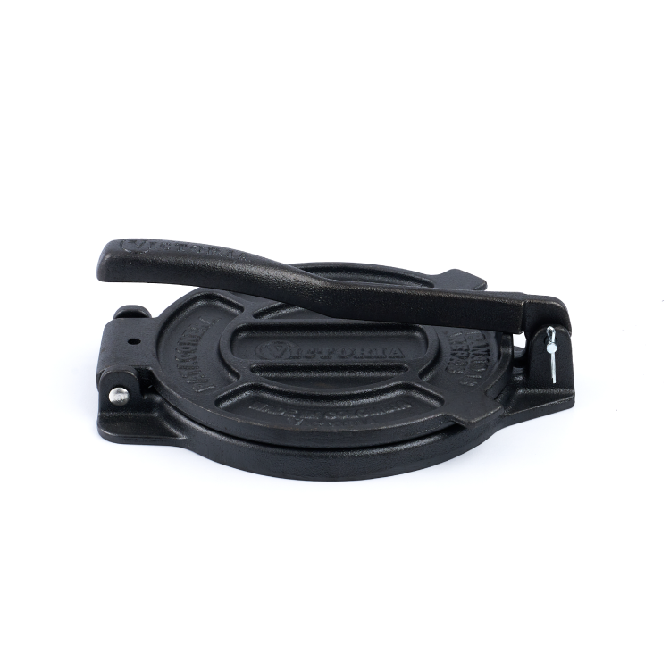 \nVictoria Tortilla Press är av kommersiell kvalitet och tillverkad av högkvalitativt gjutjärn med fokus på matlagning. Den har en förstärkt design med specialkonstruerade plattor som förhindrar nypning samt en förstärkt bas för bättre motståndskraft.