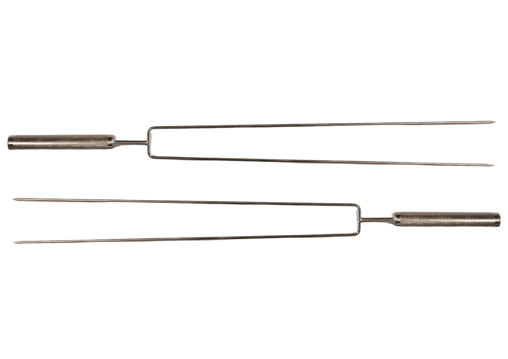 \nOmberg grillspett i värstingutförande! \nPassar att använda över öppen eld, i grill, över en 57 cm klotgrill eller i en gasolgrill. \nVi kallar dem Asado grillspett för att vi tycker att det är ett spett som lämpar sig fantastiskt för långa grillningar med ved eller kol där du inte har bråttom. Samla familj och vänner, drick nåt gott och vänd spetten när du känner för det. \n \nGrillspetten kommer i 2-pack med en figursydd väska för enkel förvaring. \nMått