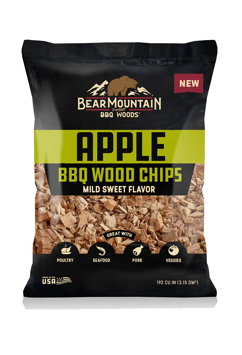 En påse Bear Mountain rökflis av äppelträd. Gott till mycket men kanske speciellt till fläsk.