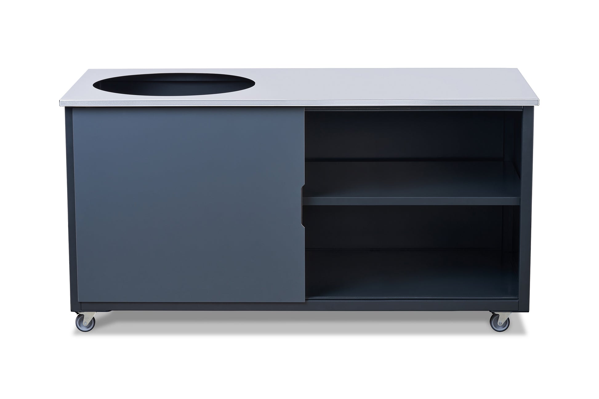 The worktop is made of carefully polished, acid-proof food grade stainless steel that is resistant to heat and is easy to clean and maintain. The precise opening in the worktop is laser cut and grill stand shelf can be adjusted in 30 mm increments (7 positions) to fit your specific kamado grill model.