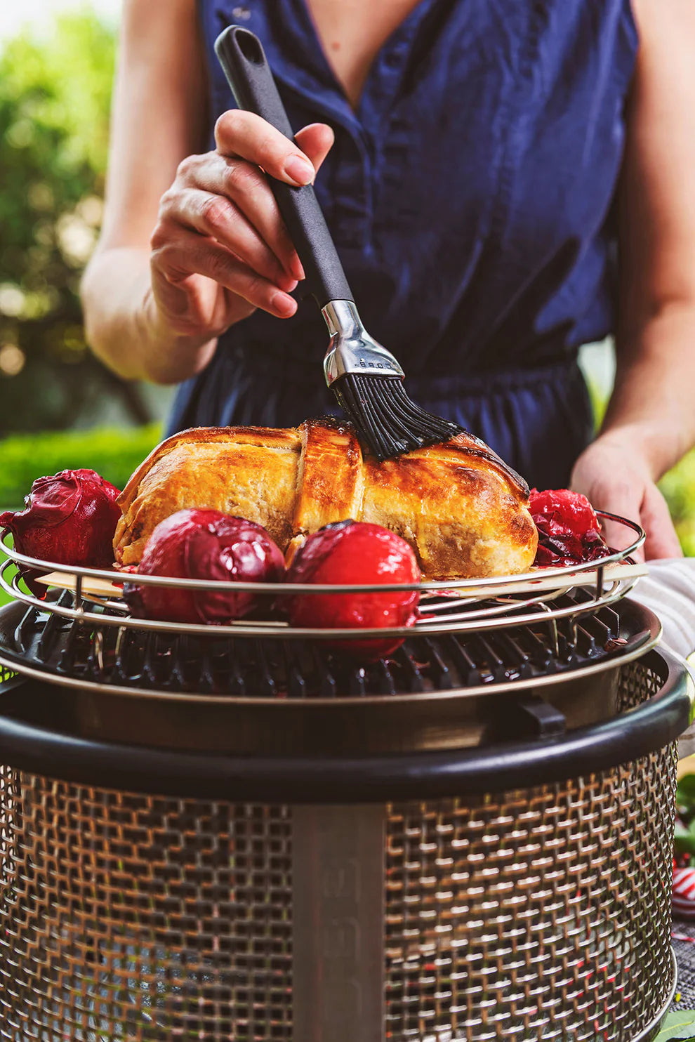 \nMed rostningsstället från COBB slipper du ständigt vända grönsaker, kyckling, revbensspjäll och stekar. Det slutna matlagningsgallret hindrar också maten från att rulla ner, vilket säkerställer att den tillagas jämnt utan att brännas medan värmen cirkulerar perfekt - perfekt för långsam rostning eller tillagning av en kalkon. Den är också utmärkt för rökning av mat. Tillagningsgallret garanterar jämn brunfärgning och ökar mångsidigheten hos din COBB-grill avsevärt! Det passar exakt på den ihåliga grillplattan eller Griddle+.