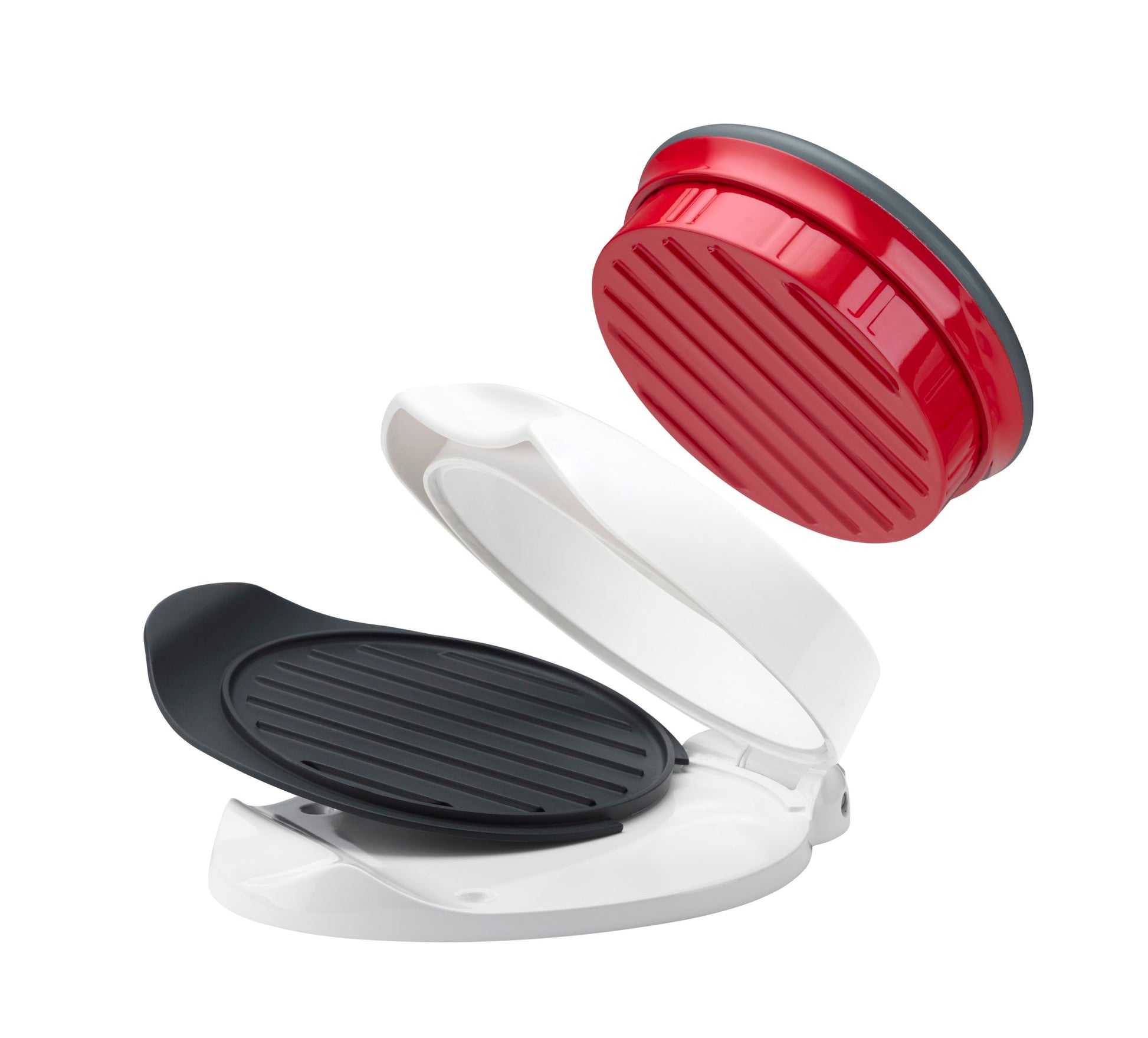 Hamburgerpressen från Zyliss formar enkelt perfekta hamburgare redo att grillas. Pressen har två storlekar beroende på vilken tjocklek du vill att din hamburgare ska ha och lämnar ett klassiskt mönster på hamburgaren. Med en löstagbar bricka flyttar du enkelt hamburgaren till stekpanna eller grill.
