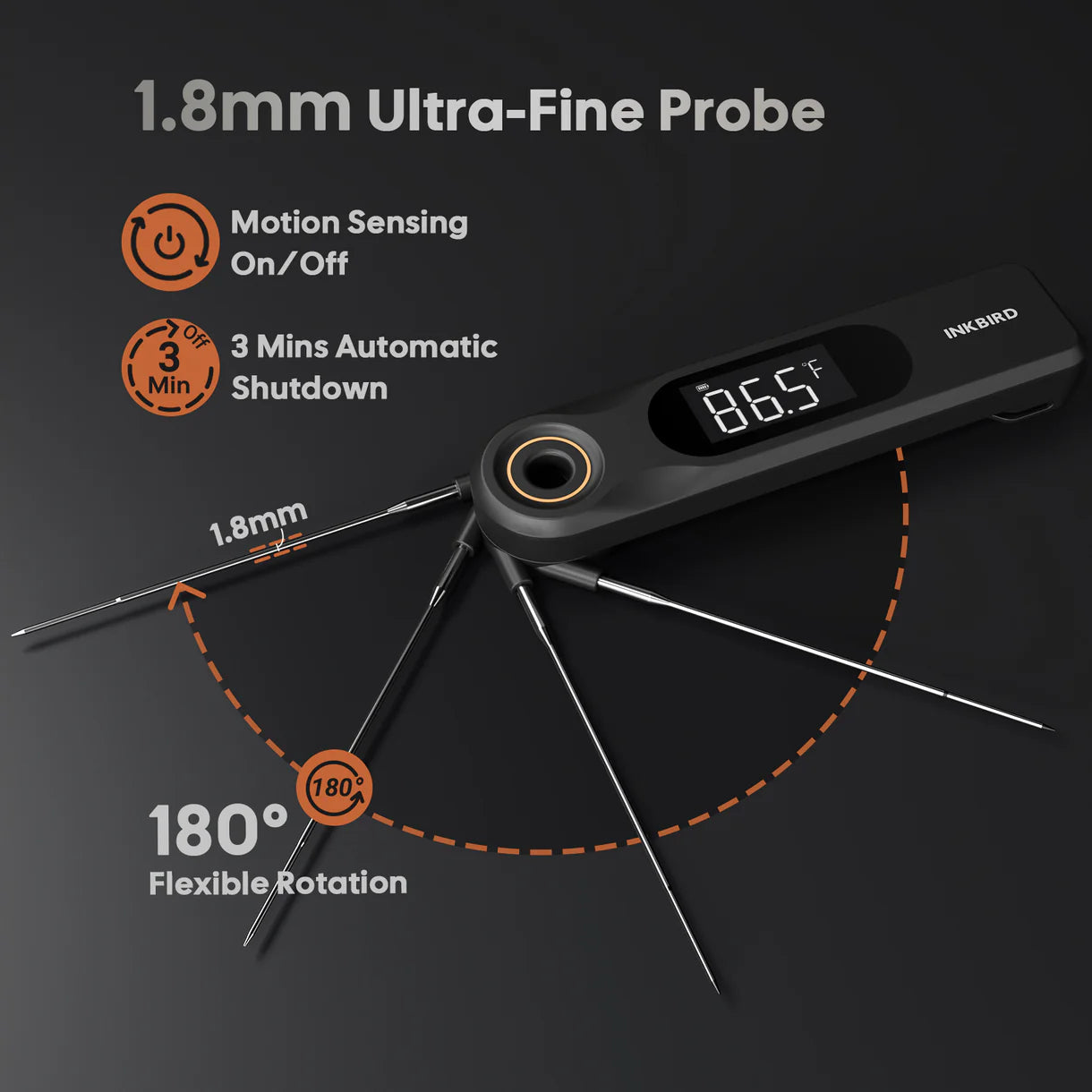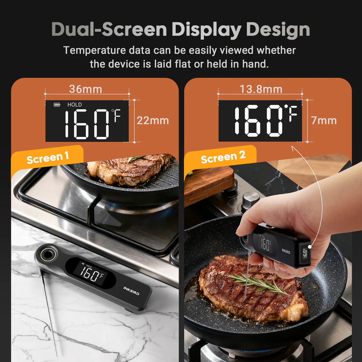 INKBIRD IHT-51K är en snabb och extremt exakt instickstermometer för dig som grillar, röker eller lagar mat med precision. Med sin unika dubbla display kan du läsa temperaturen oavsett om termometern ligger på bänken eller hålls i handen.