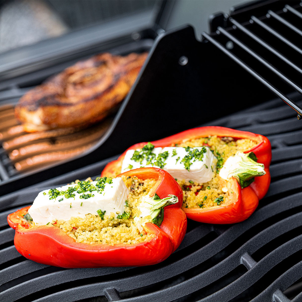 Värmehylla - Ger extra yta för tillagning eller varmhållning i grillen.
