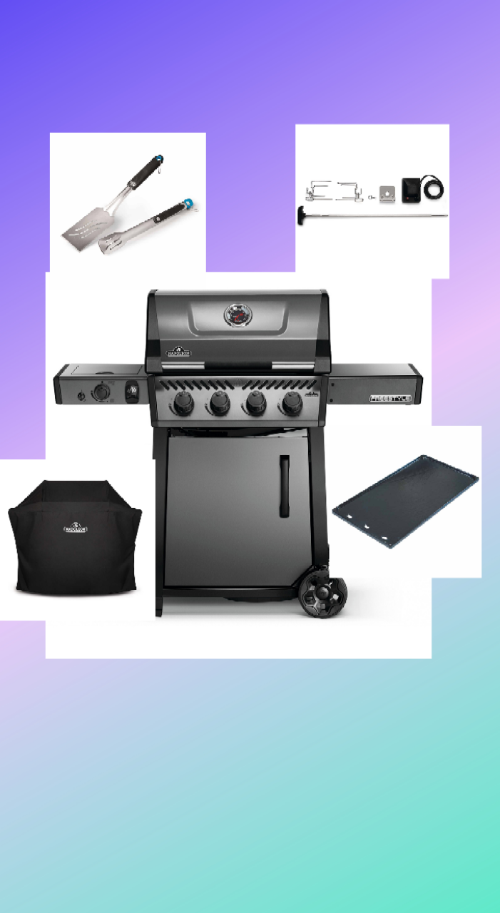 \nNapoleon Freestyle 425 DSIB Paket är just vad det låter som. Övergrymma Napoleon Freestyle 425 DSIB tillsammans med must have härlig extrautrustning! \n \nFreestyle 425 DSIB är en gasolgrill med maxad effekt trots ett ganska kompakt utseende. Här har vi slängt ihop ett paket med grillen och extra utrustning till ett extra bra pris! Rekommenderas. \n \nFöljande medföljer i paketet: \n-