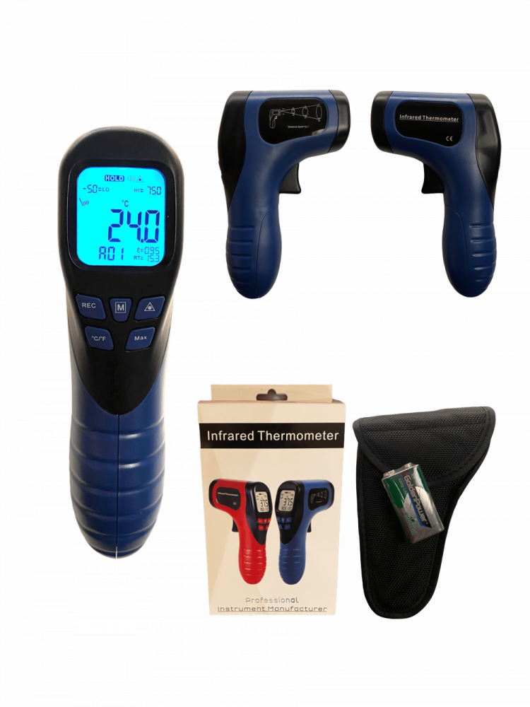 Riktigt grym IR-termometer som kan mäta från -50 grader upp till 750 grader C. Termometern har funktioner som kan mäta min och maxtemperatur, mellanskillnaden mellan min och max och medeltemperaturen. Den har också en minnesfunktion där man kan lagra flera temperaturmätningar. Celsius eller fahrenheit.