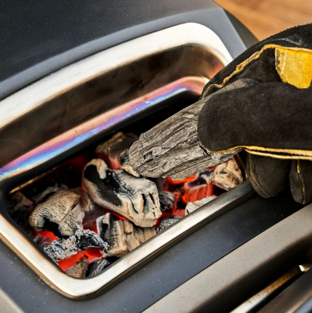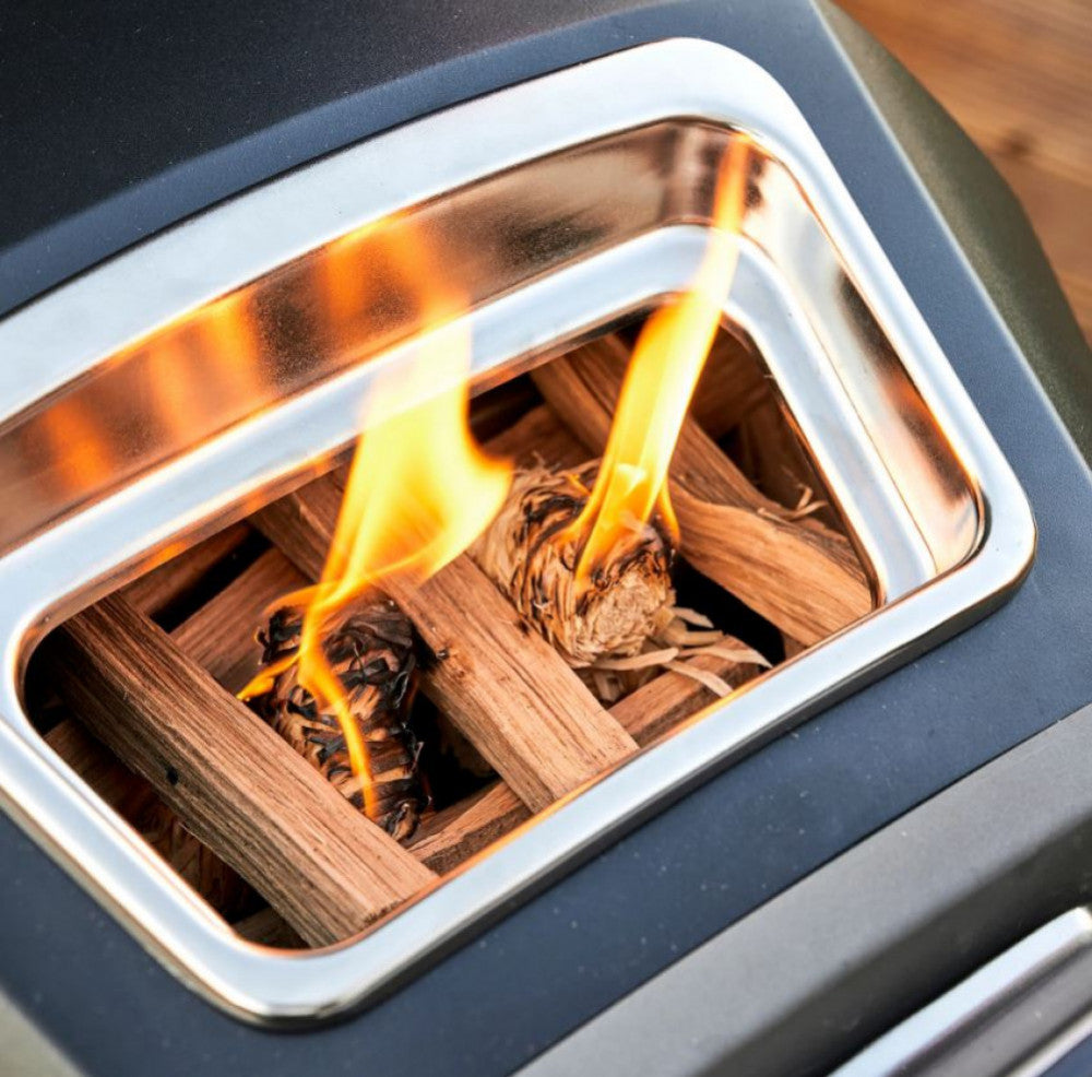 \nOoni Karu 12G är en vedeldad pizzaugn, Närmare bestämt en uppgraderad variant av föregående storsäljaren Ooni Karu 12. \nNu finns äntligen en ny uppgraderad version av storsäljaren Karu 12, nämligen Ooni Karu 12G! Med ett nytt "facelift" och nya spännande funktioner. \n \nKaru 12G har fått en ny design i jämförelse med den tidigare Karu 12. På den nya modellen så är ytterhöljet i pulverlacket kolstål istället för rostfritt stål vilket gör att ugnens ytterhölje har mindre risk för missfärgning. Kanonsnygg! Karu 12G har också bättre isolering och värmelagring vilket gör att ugnen håller värmen bättre än på tidigare version. \n \nFörutom bättre isolering och bättre värmelagring så har nya Karu 12 G också fått en ny uppgraderad frontlucka med inbyggt glas vilket gör att du hela tiden kan ha en övergripande blick på den pizza. En annan ny trevlig funktion är den inbyggda analoga termometern samt den nya större vedluckan. \n \nFörutom de nya funktionerna samt den nya designen så når Karu12G precis som tidigare modell temperaturer på upp till 500 °C vilket gör den perfekt för napolitansk pizza. Ugnen funkar också till andra typer av matlagning och bakning. Ugnen som är en vedeldad pizzaugn är kompatibel med ved eller kol men fungerar också med gasol med tillbehöret gasolbrännare. \n \nVikten på ugnen är cirka 16 kg vilket gör den portabel och enkel att förflytta ut till skogen, sommarstugan eller till fjällstugan. Alla tillbehör som passar den tidigare Karu 12 passar också till Karu 12G. \n \nFunktioner: \n* Håller värmen bättre än tidigare modeller \n* Ny större vedkorg baktill vilket gör att du kan ha större vedbitar och inte behöver fylla på mer ved lika ofta \n* Lucka med inbyggt ClearView™ glas vilket minskar risken för sot. Glasluckan ger dig också full kontroll över pizzan utan att behöva öppna luckan och tappa värme \n* Snabbare upp i värme än tidigare modell \n* Inbyggd termometer \n* 15 mm tjock cordierite-sten \n* Portabel