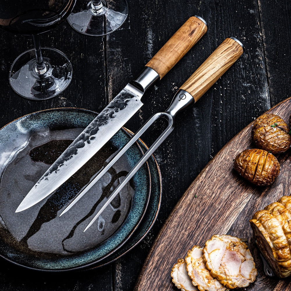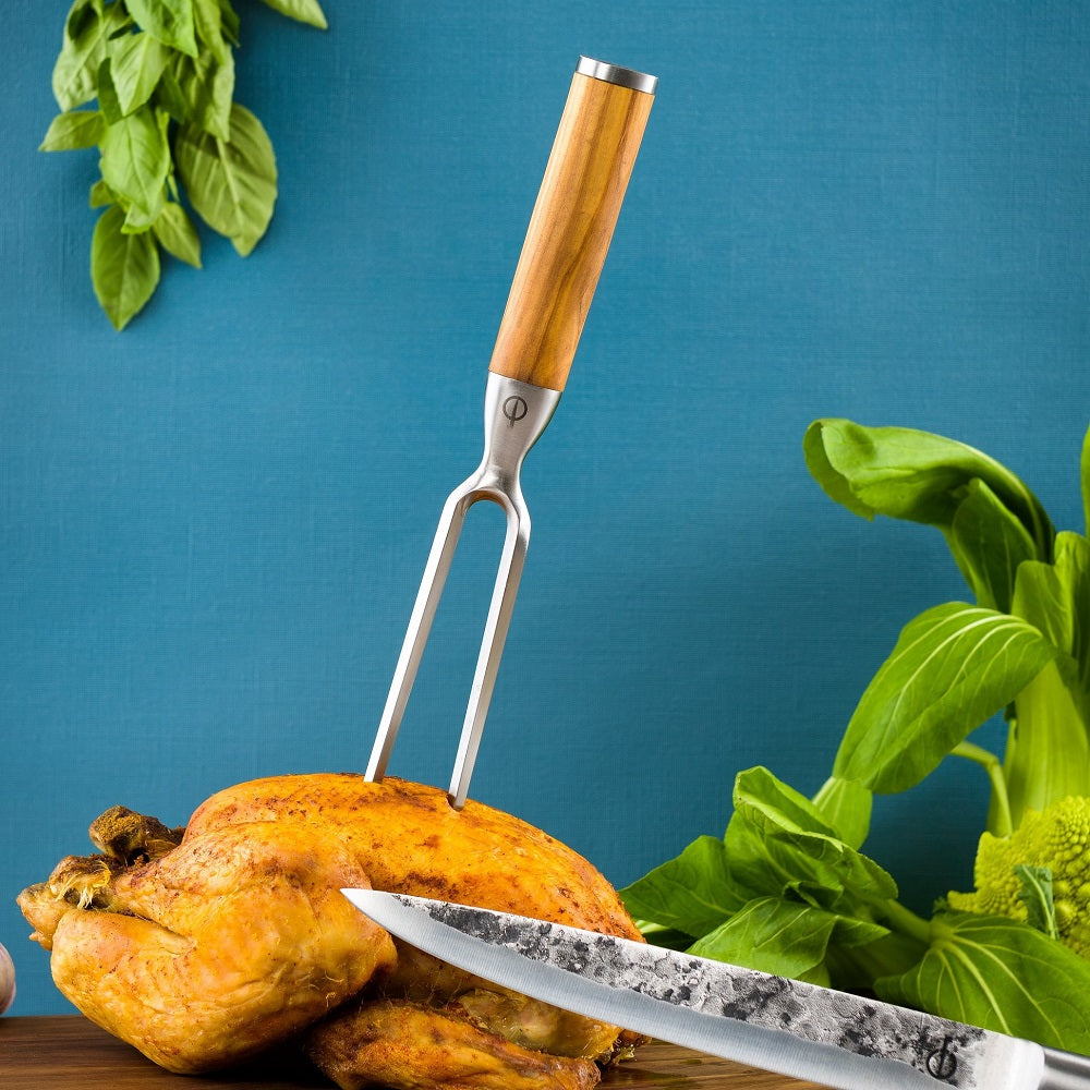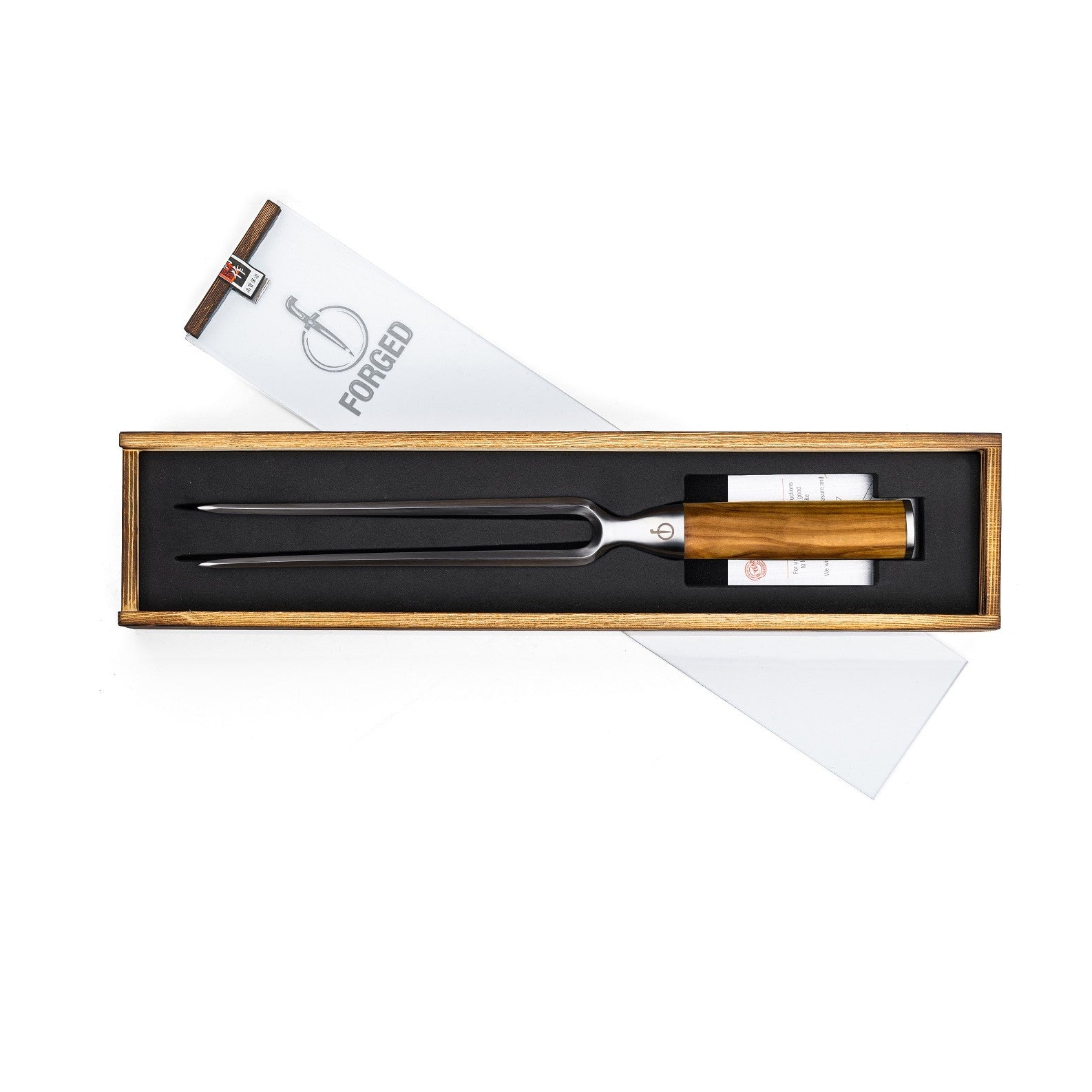 Forged Olive stekgaffel används för att hålla kött eller fågel på plats under tranchering. Stekgaffeln kombineras bäst med en stekkniv. Kommer i en lyxig låda. Vi lämnar 2 års garanti.