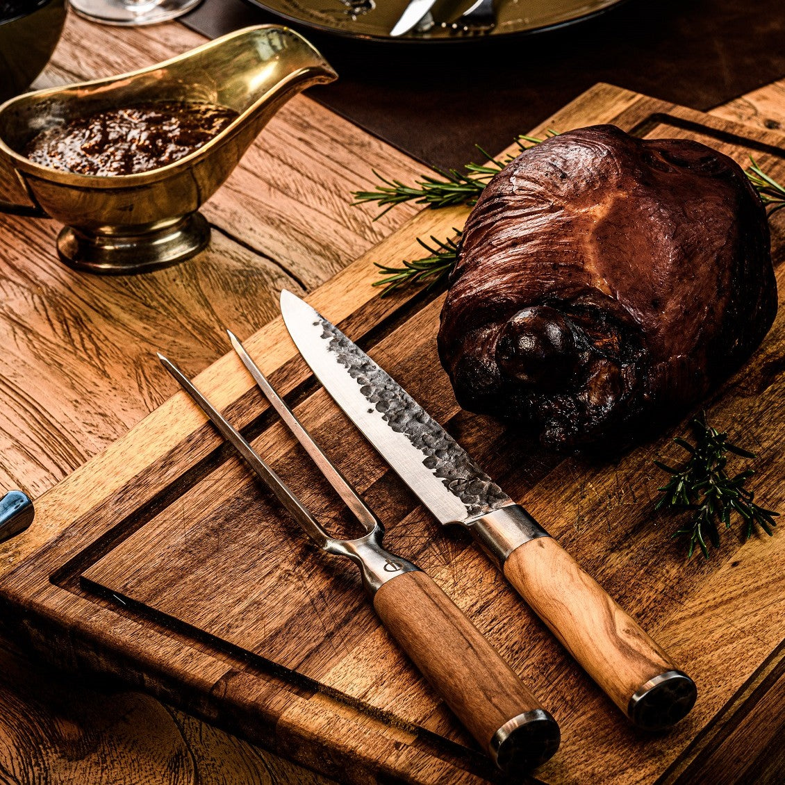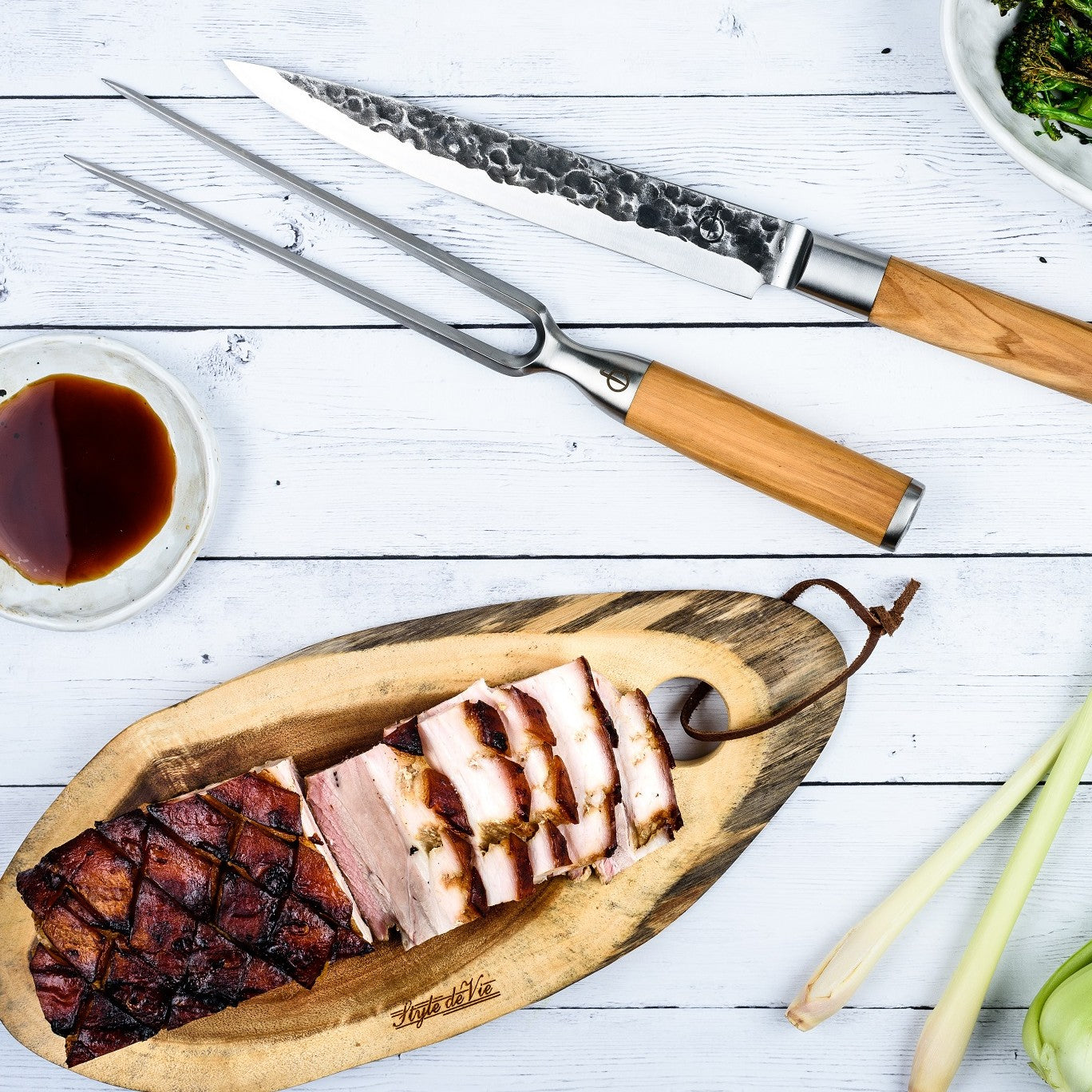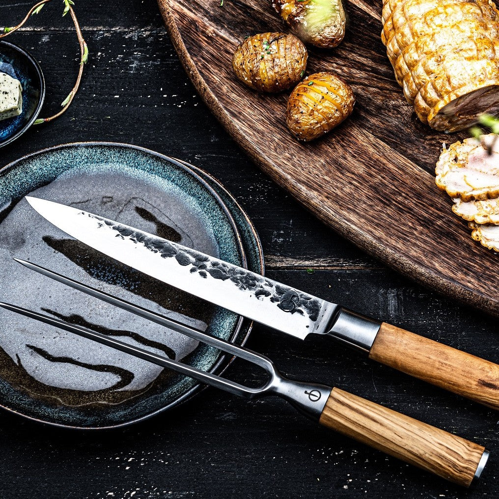 Forged Olive stekgaffel används för att hålla kött eller fågel på plats under tranchering. Stekgaffeln kombineras bäst med en stekkniv. Kommer i en lyxig låda. Vi lämnar 2 års garanti.