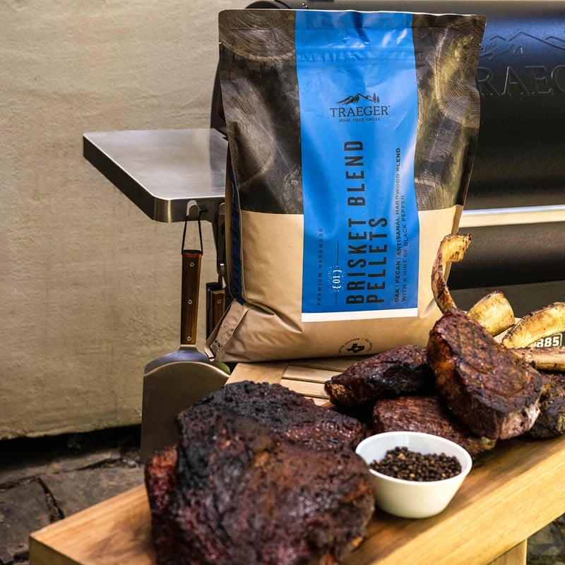 \nOm du älskar att grilla brisket, då är denna Limited Edition träpelletsblandning den perfekta följeslagaren. Traeger Brisket-träpellets är en unik blandning av ek och pekanödeträ med en touch av svartpeppar. Röken från dessa träpellets är skräddarsydd för att ge din brisket den helt rätta, oemotståndliga BBQ-smaken, men de kan såklart också användas till många andra typer av kött. \n \nTraeger har fyra pelletsfabriker i USA och där tillverkas alla deras träpellets. Man tillsätter varken fyllmedel, bindemedel eller bark. Endast det bästa får hamna i Traegers träpellets och det ger därmed den mest optimala och rena röken för grillning och hjälper din pelletsgrill att hålla i många år. \n-
