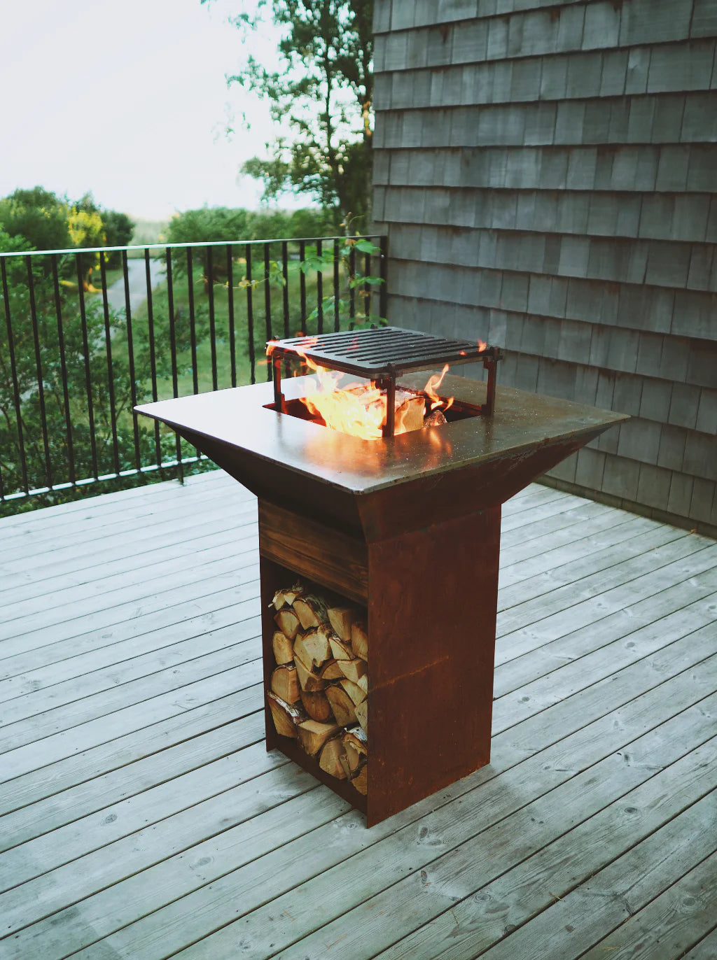 Material: Cortenstål (fot, låda och eldtråg) och 10mm kolstål (stekbord och grillgaller)